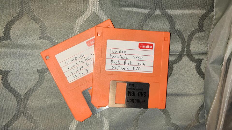 Fully working upgraded Compaq Prolinea 4/50. 4.3 Gig spinning disk Seagate hard drive, maxxed out 16Meg RAM, sound card, CD-ROM drive, 1.44 Meg floppy, 486DX2 CPU @ 50Mhz, all components matching Compaq branded. Loaded with games, Windows 3.11, ready to play. Plenty of games preloaded, if you have a special game you want, contact me, we can make it happen. CD-ROM, sound card, and hard drive are after-market upgrades, the rest are official Compaq components. Comes with computer, monitor, keyboard, mouse, keyboard dust cover, and speakers. If you live within 30 miles of Marietta GA, I can deliver and setup in person. Price: $499.00BuyPrice: $499.00Buy |